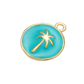 Add some fun to your look with this Teal Palm Tree Charm. Crafted from 18K plated copper and enamel, it features an easy-to-use clasp that lets you attach it effortlessly to any necklace or bracelet. Perfect for switching up your style, this charm brings a playful, beachy vibe to your everyday outfits.