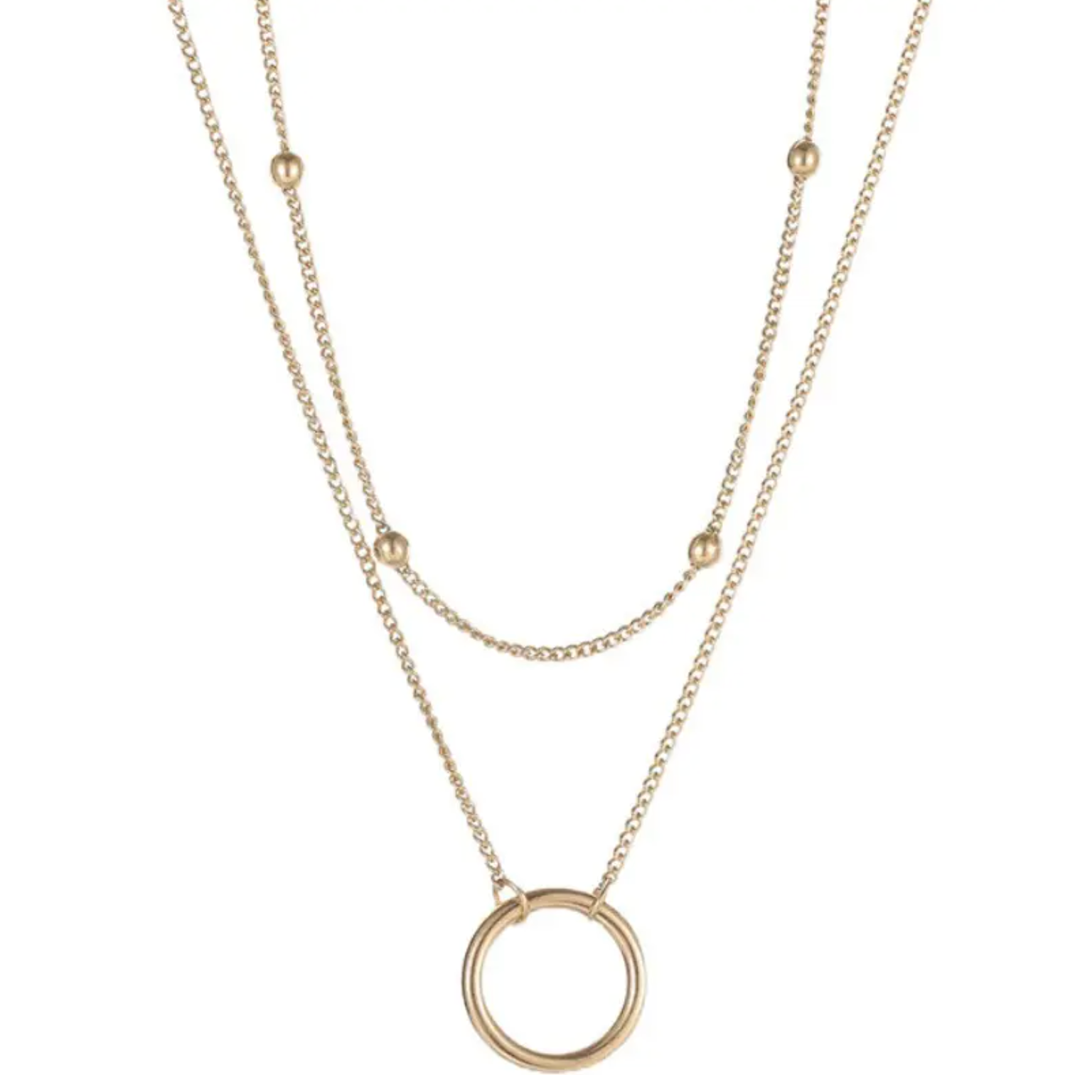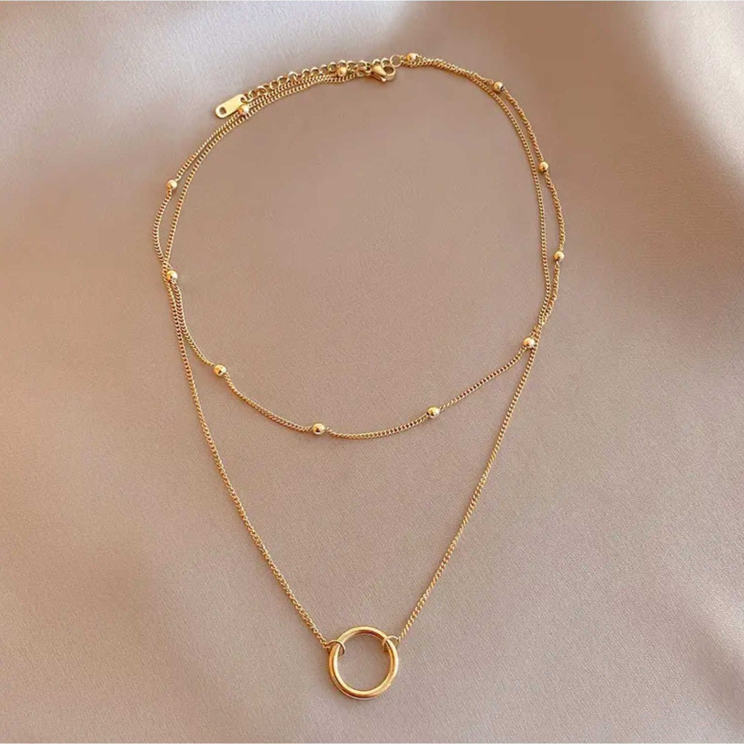Make a subtle yet stylish statement! This elegant double layered gold necklace is perfect for those who love a refined touch of beachy fun. The 18K gold stainless steel chain is 17.5 inch with a 2 inch extender. These delicate chains and charming circle pendant create a soft shimmer, perfect for catching the light as you enjoy the relaxed seaside vibes.