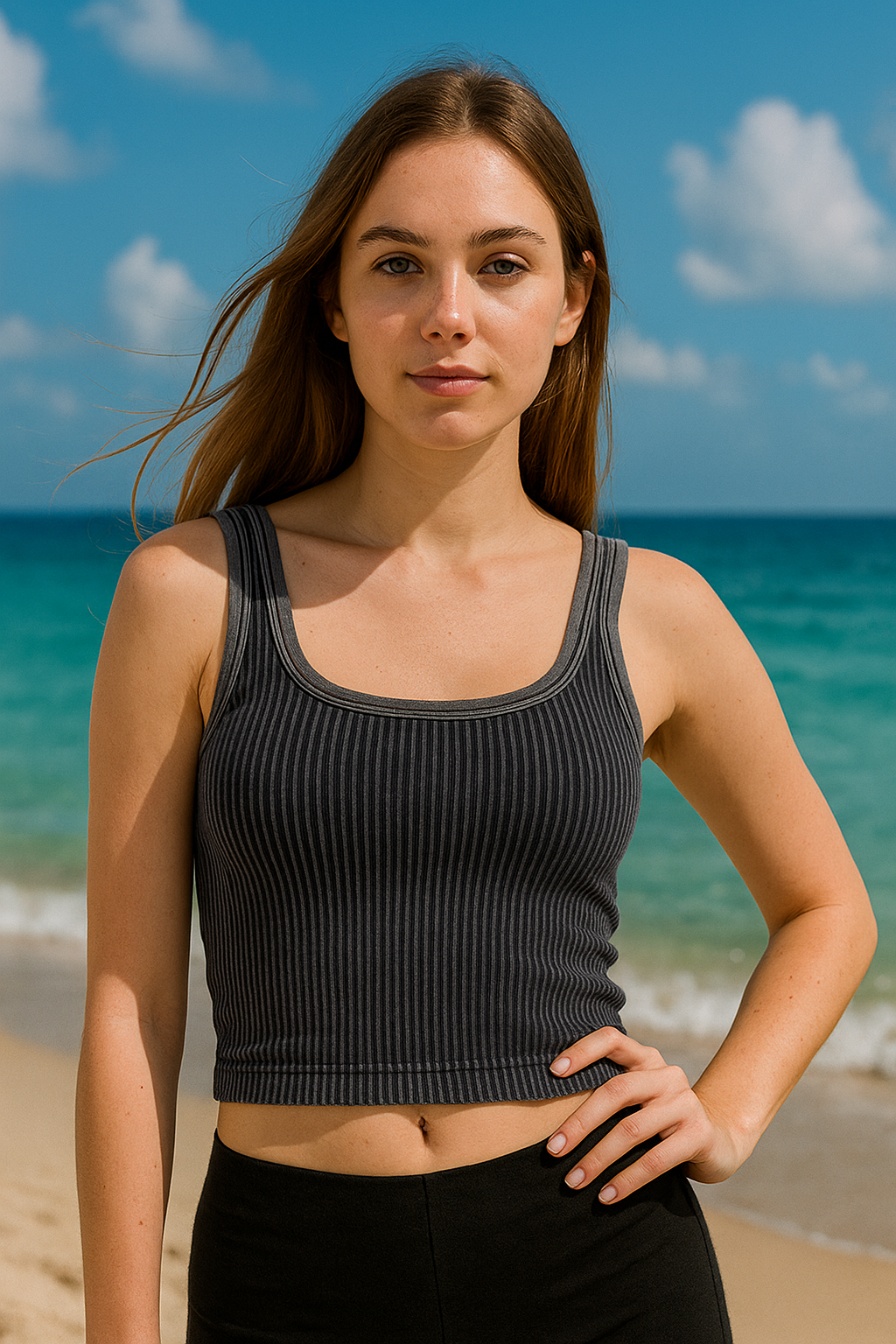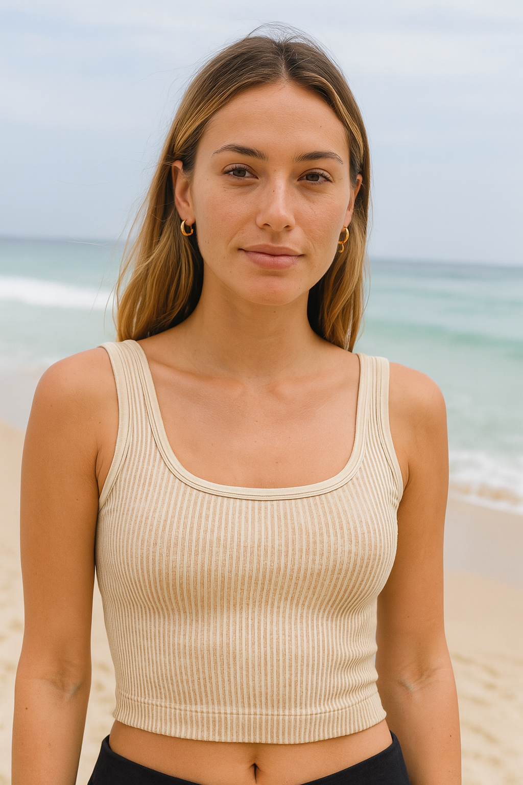 Experience ultimate comfort with our Aria Stone Washed Ribbed Bra Tank Top! This sun-kissed essential features a built-in padded bra for effortless support while you catch waves or sip cocktails oceanside. The stone-washed finish gives that perfectly lived-in vibe, making it your go-to piece for beach days, boardwalk strolls, or just chilling with sandy toes. Dive into summer with this carefree tank that's ready for whatever adventures the tide brings in!