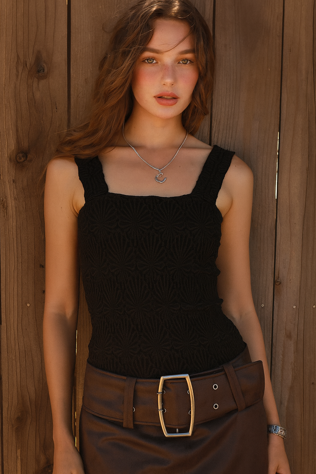 Forget fussy straps and tight fits; this easy-breezy beauty features a chic square neckline and softly ruched straps that give you that cute, carefree look. The fabric is a delicate floral lace with a shell-like texture, making you feel like a mermaid who just swam ashore.
