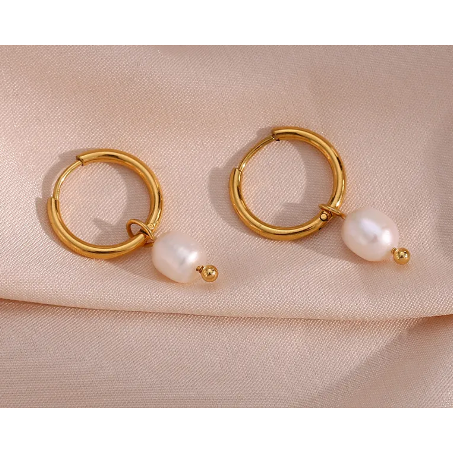 These stunning gold hoop earrings with freshwater pearls and 18k plated stainless steel hoops are your new go-to! They bring a touch of sophisticated beach charm, perfect for dressing up your sunset dinner look or adding a refined sparkle to your casual seaside strolls.