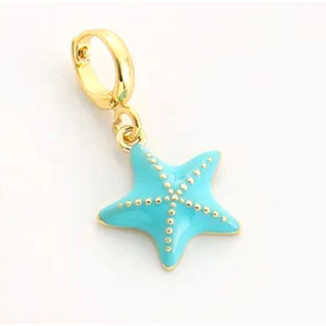 Add some fun to your look with this Turquoise Starfish Charm. Crafted from 18K plated copper and enamel, it features an easy-to-use clasp that lets you attach it effortlessly to any necklace or bracelet. Perfect for switching up your style, this charm brings a playful, beachy vibe to your everyday outfits.